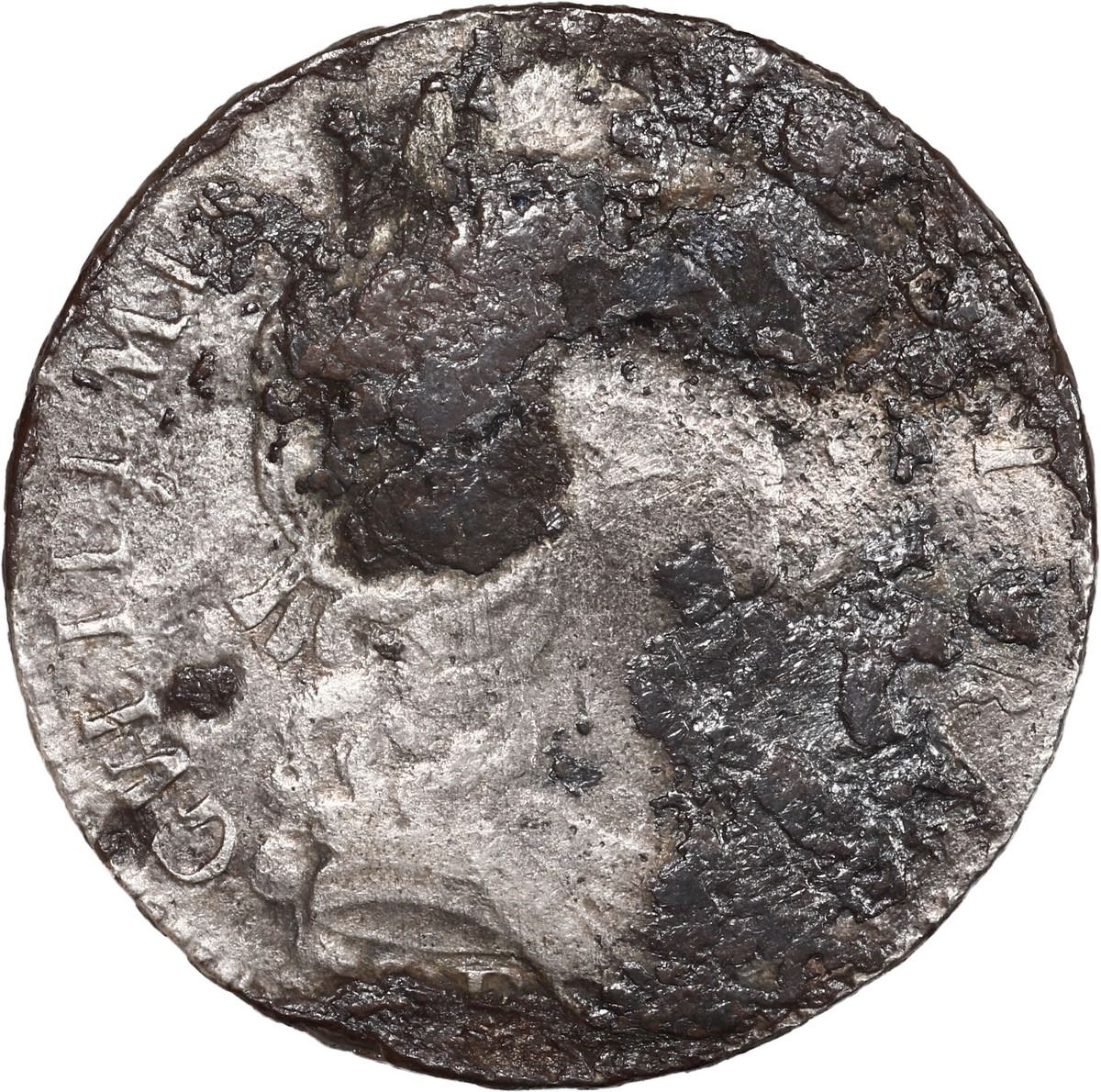 GREAT BRITAIN, Exeter mint, half crown, William III, 1696-E, first bust, small shields, early harp.