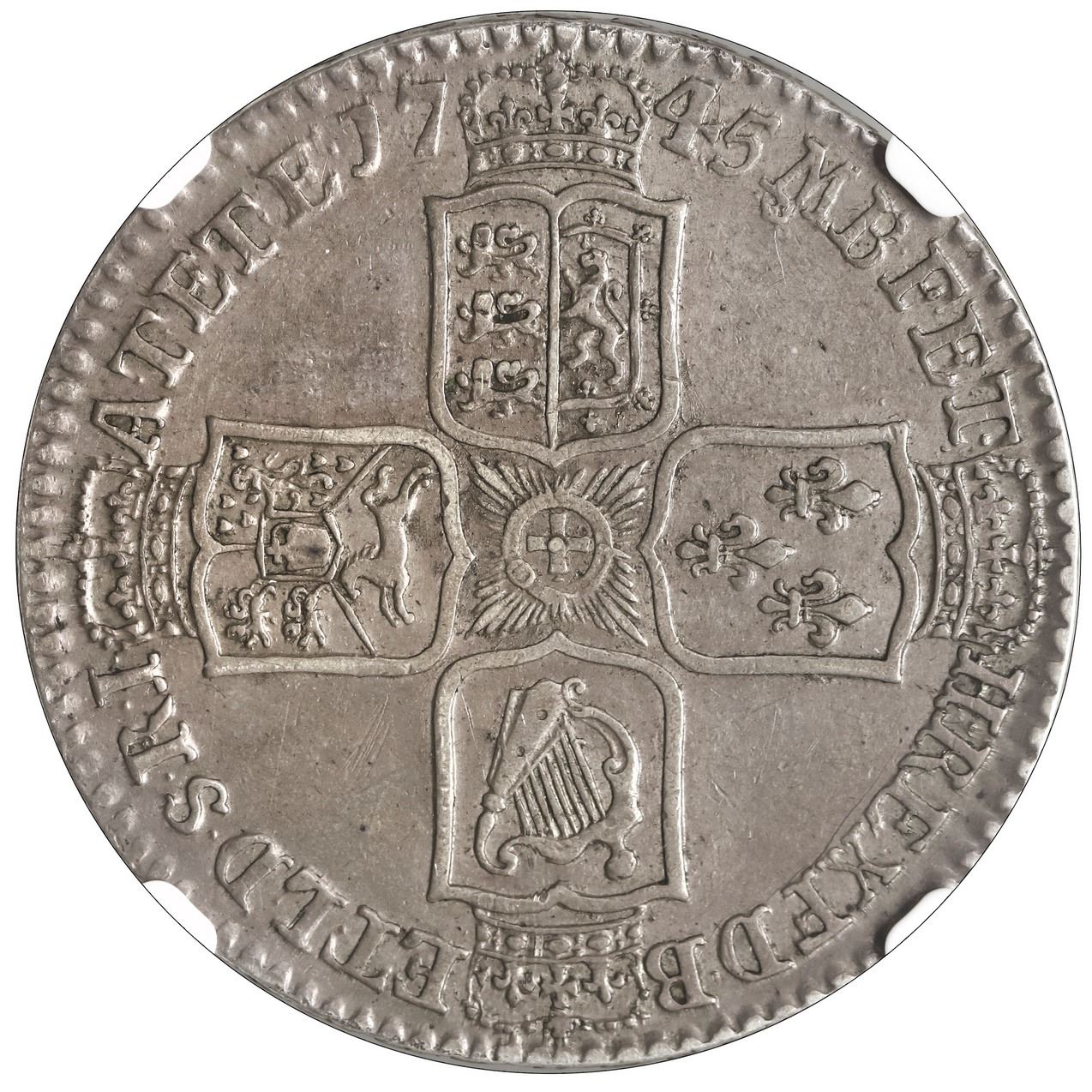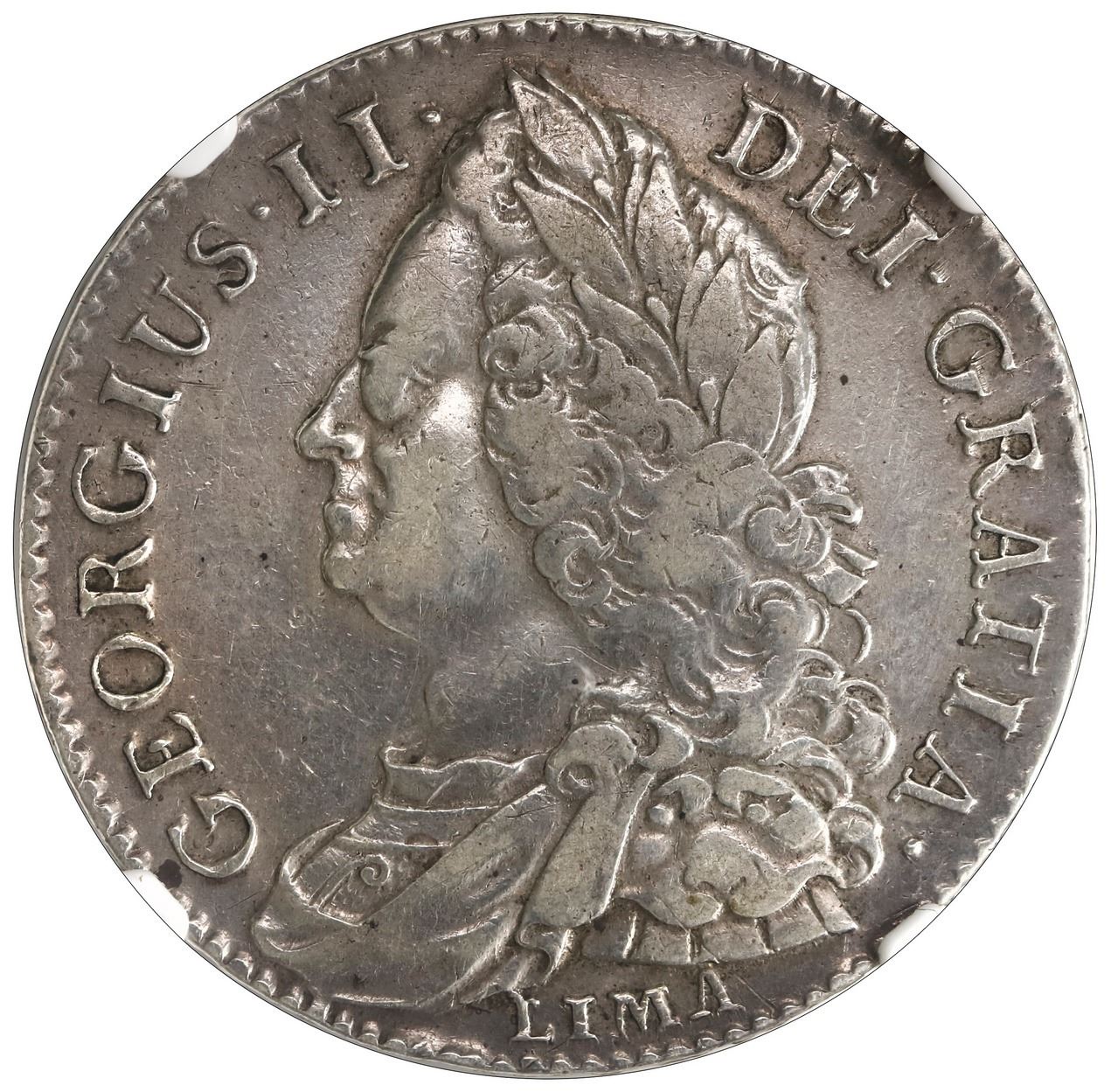 GREAT BRITAIN, London, England, ½ crown, George II, 1745, with LIMA below bust, NGC XF details / cle