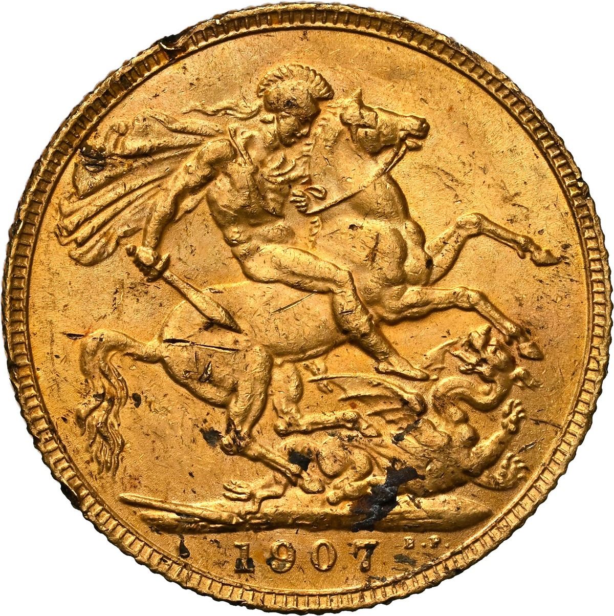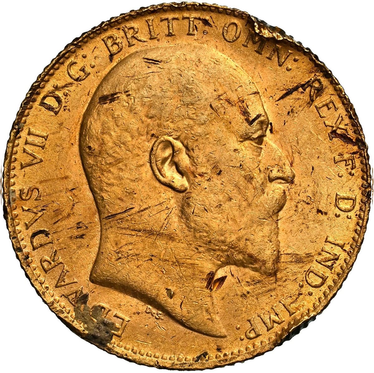GREAT BRITAIN, London, gold sovereign, Edward VII, 1907, NGC AU details / damaged (Shipwreck Blue Label). Sp-3969; KM-805; Fr-400. Rich gold color with bold details and nice luster but lots of minor marks and slight rim-damage, trace of encrustation. With certificate. Recovered from: S.S. Egypt, sunk in 1922 off Ushant, France