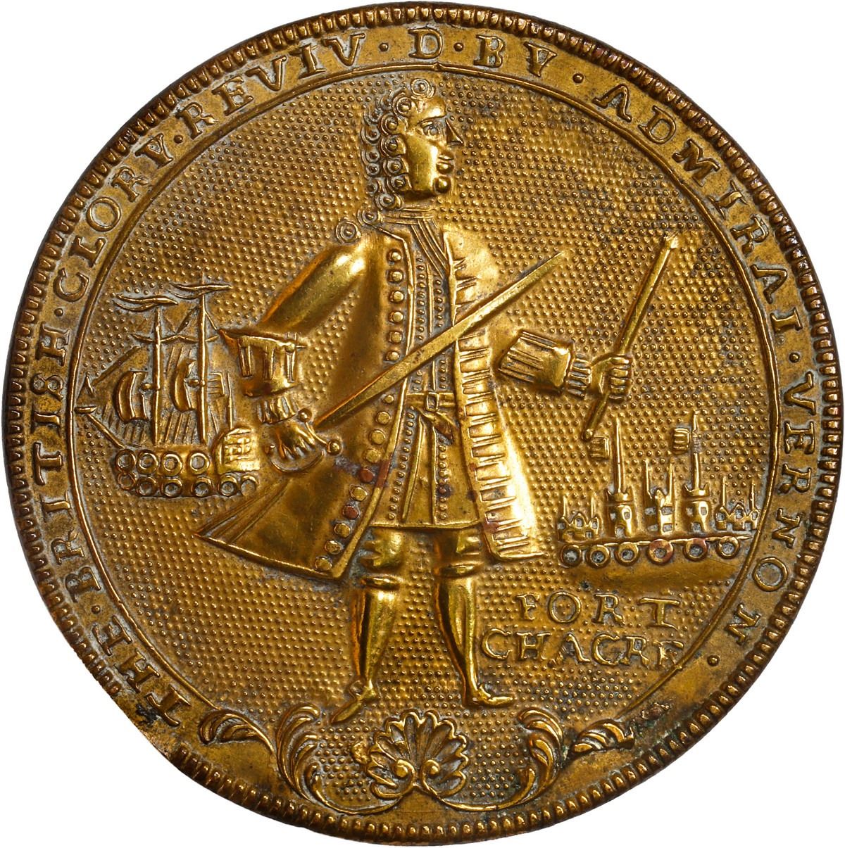 GREAT BRITAIN, copper alloy Admiral Vernon medal, 1739, Vernon and Fort Chagre / Porto Bello.