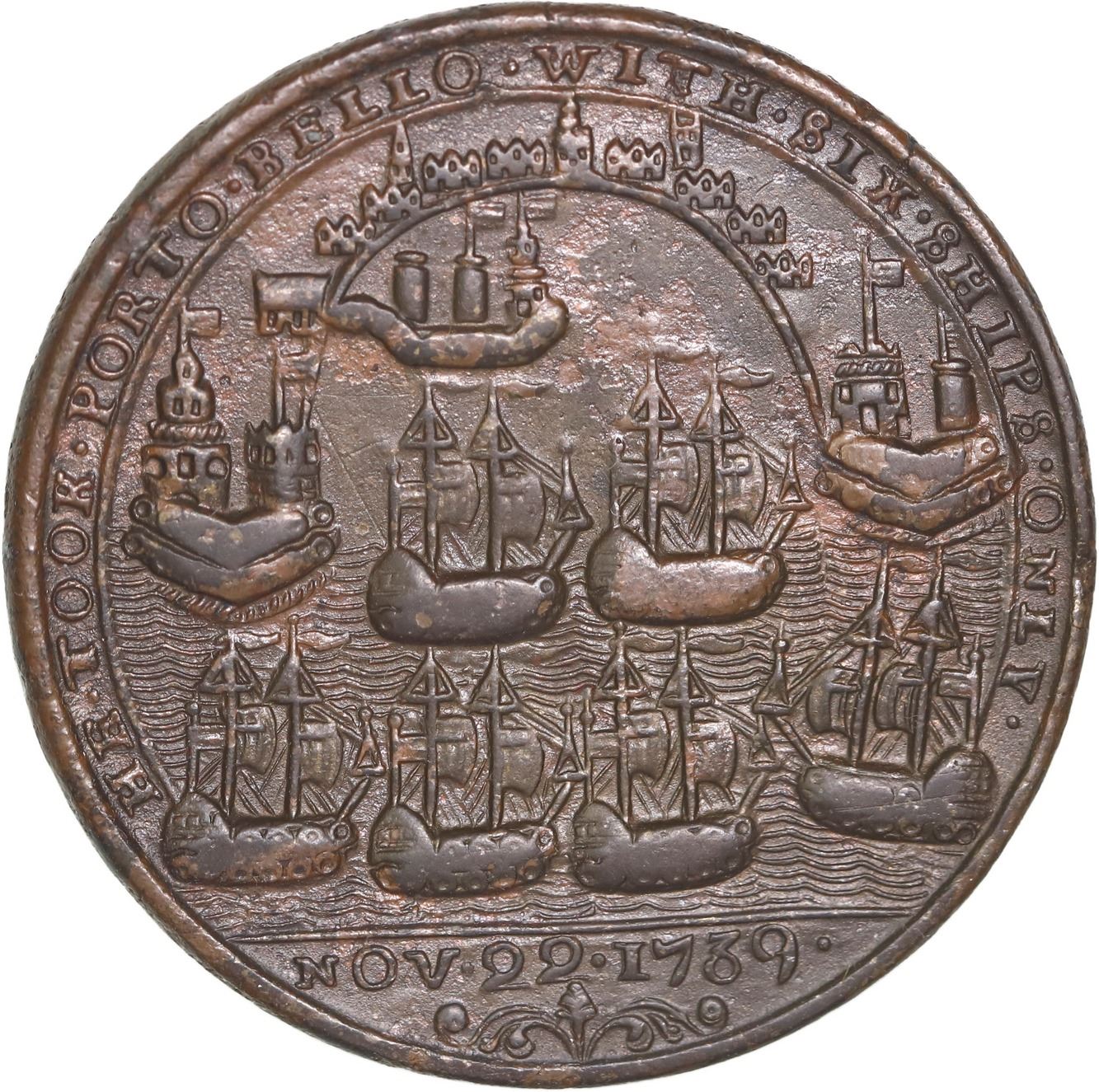 GREAT BRITAIN, copper alloy Admiral Vernon medal, 1739, Vernon and ship and cannon / Porto Bello, ex