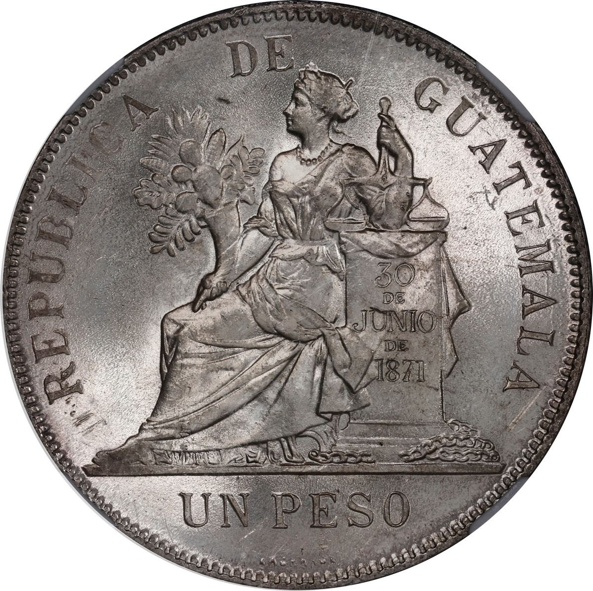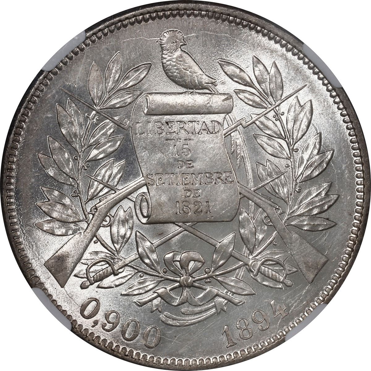 GUATEMALA, 1 peso, 1894, NGC MS 64.