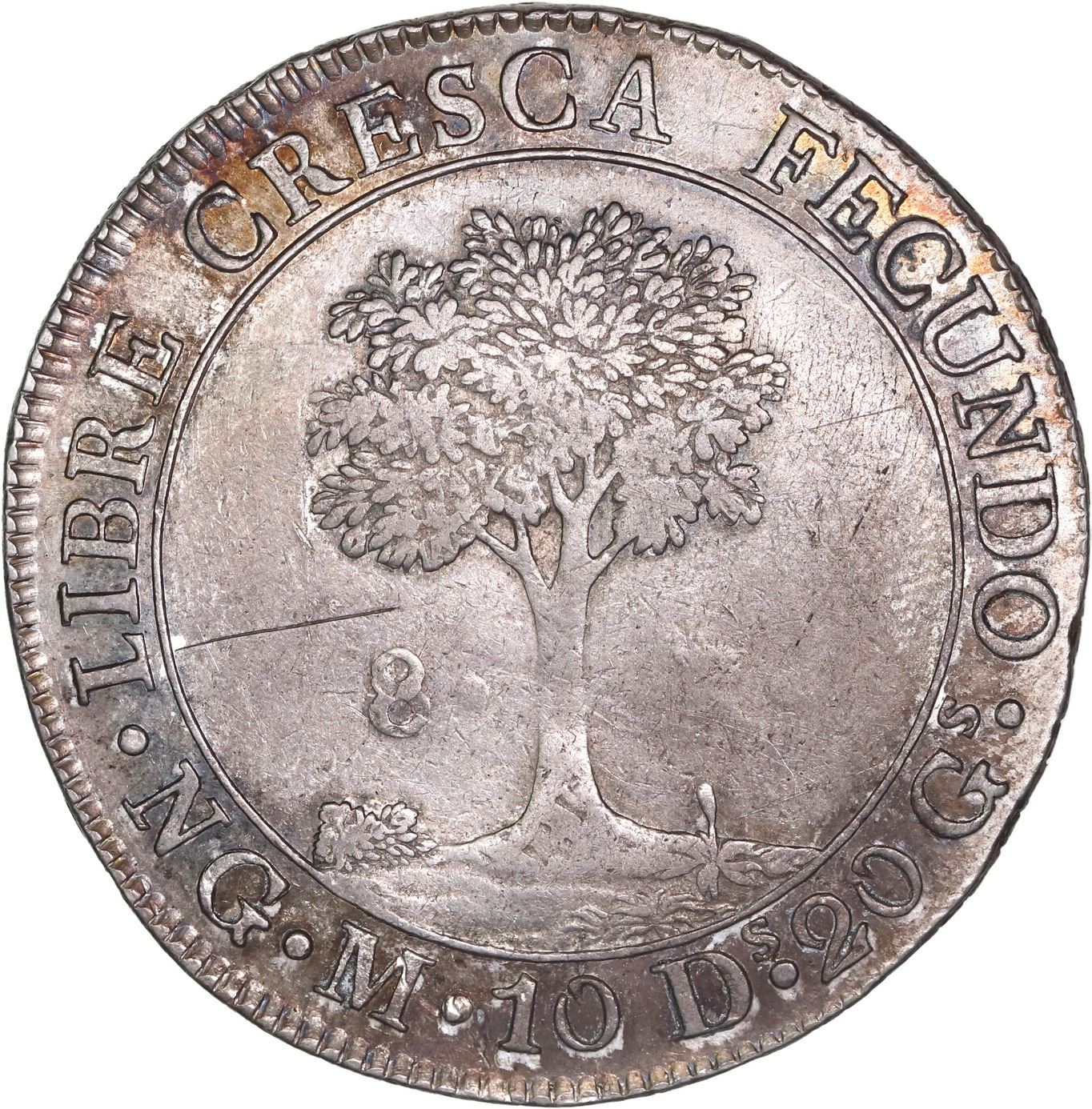 GUATEMALA (Central American Republic), Guatemala City, 8 reales, 1827 M. KM-4. 26.89 grams. AU or so with luster around the legends, scratch above the denomination.