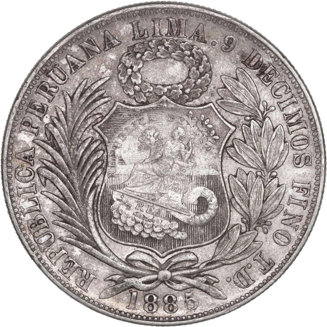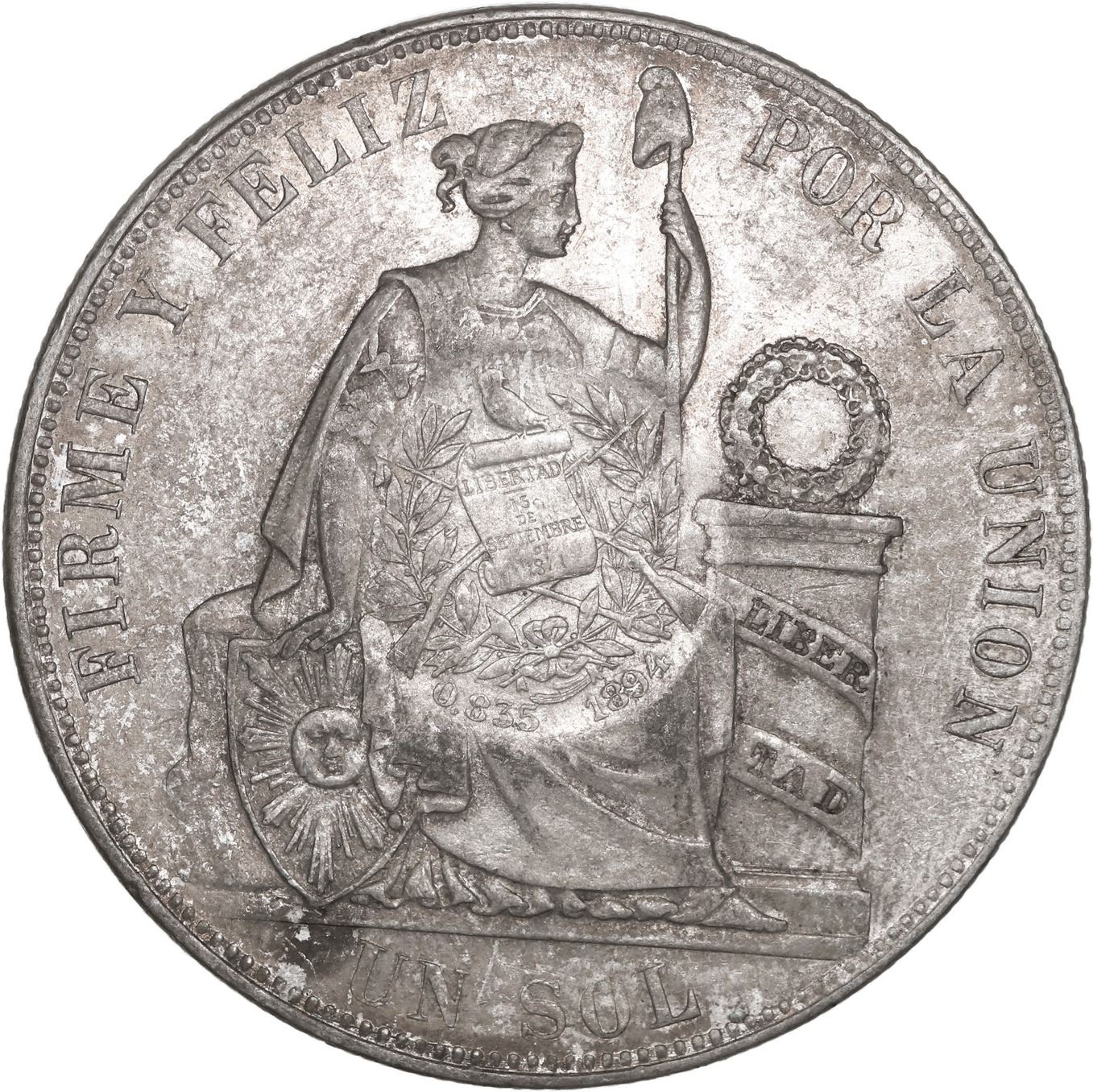 GUATEMALA, Guatemala City, 1 peso,  ½ real  counterstamp of 1894 on a Lima, Peru, 1 sol, 1885 TD, NG