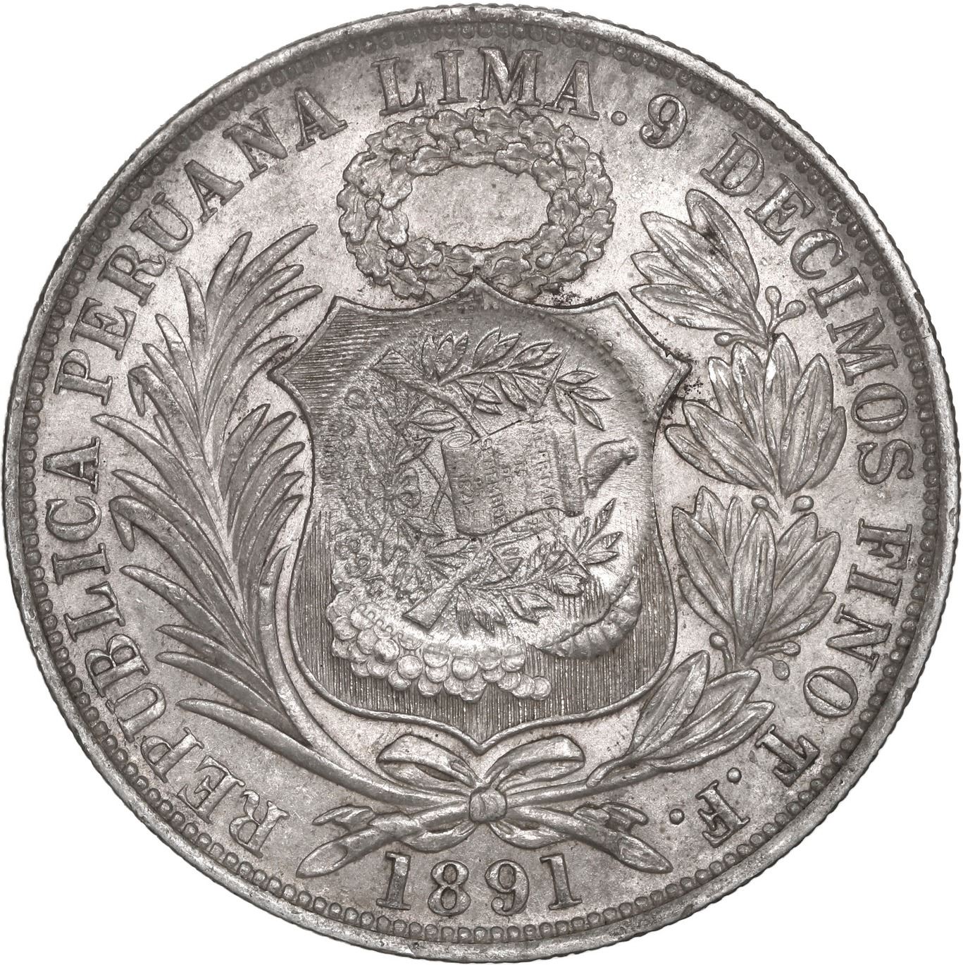 GUATEMALA, Guatemala City, 1 peso,  ½ real  counterstamp of 1894 on a Lima, Peru, 1 sol, 1891 TF/BF,