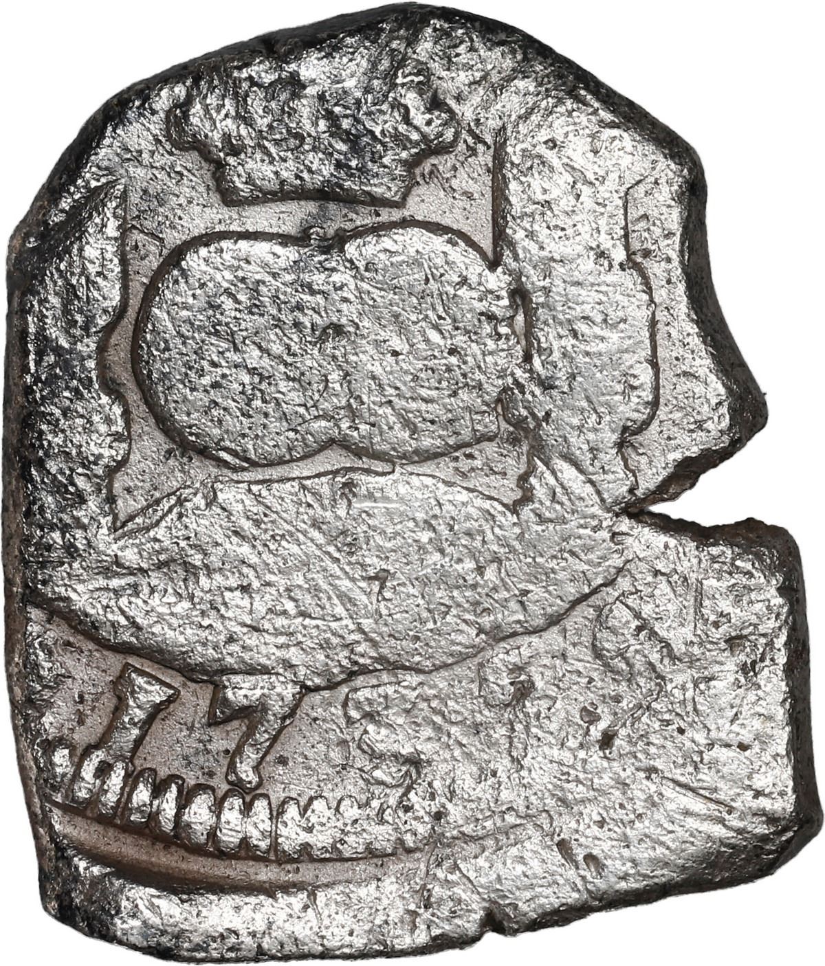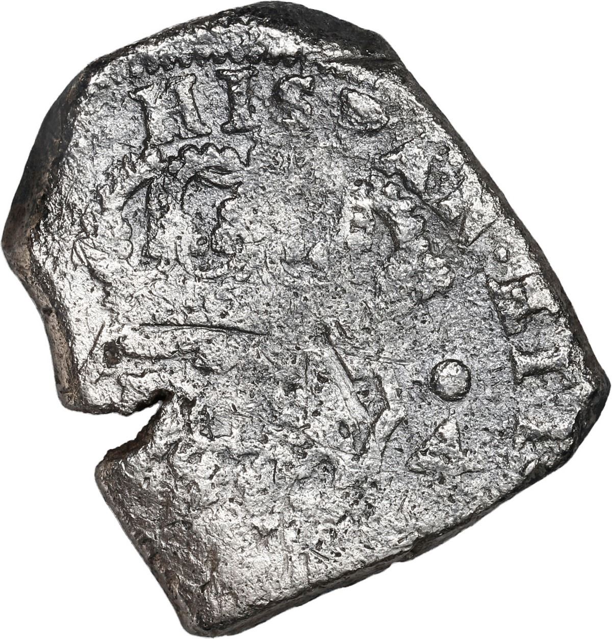 GUATEMALA, Guatemala City, cob 4 reales, 1735 J. JP-4R3; S-G1; KM-5; Cal-1006. 13.02 grams. Full 17 of date with weaker but still certain 35, full denomination 4 to right of off-center shield with full crown above, surface corrosion and pitting all over, small edge-split. Recovered from: Hollandia, sunk in 1743 off the Isles of Scilly, southwest of England