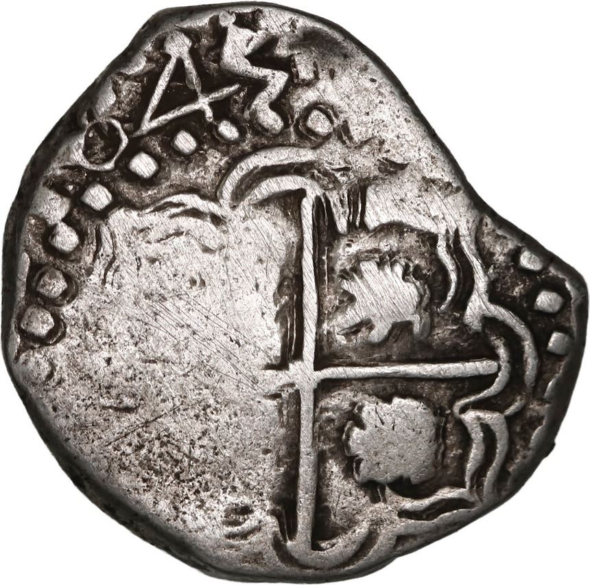 GUATEMALA, Guatemala City, "moclón" 2 reales, crown countermark (1662) on the shield side of a Potosí, Bolivia, cob 2 reales, 1645 T, very rare, ex-Ponte. Perez Longo-Type B; Cal-838; KM-B1.4 (host: S-P30; KM-14a; Cal-unl [Type 239]). 6.95 grams. An exceptional example with 100% full countermark inside host's full shield with bold P-T to left, but best feature is the very full and bold date outside of cross, half of which is flat and scratched from the countermark on the other side, overall VF with nice toning in crevices and around details. Pedigreed to the Luis R. Ponte Collection.