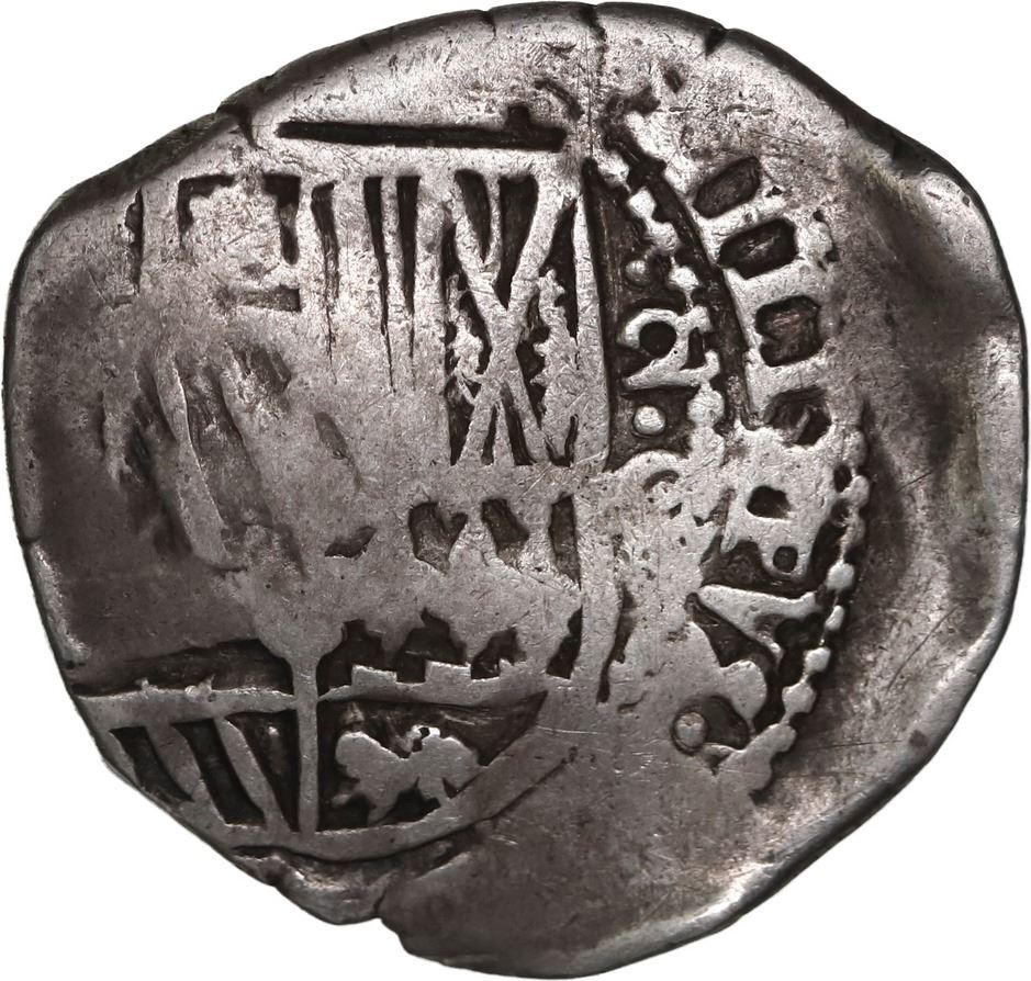 GUATEMALA, Guatemala City, "moclón" 2 reales, crown countermark (1662) on the shield side of a Potos