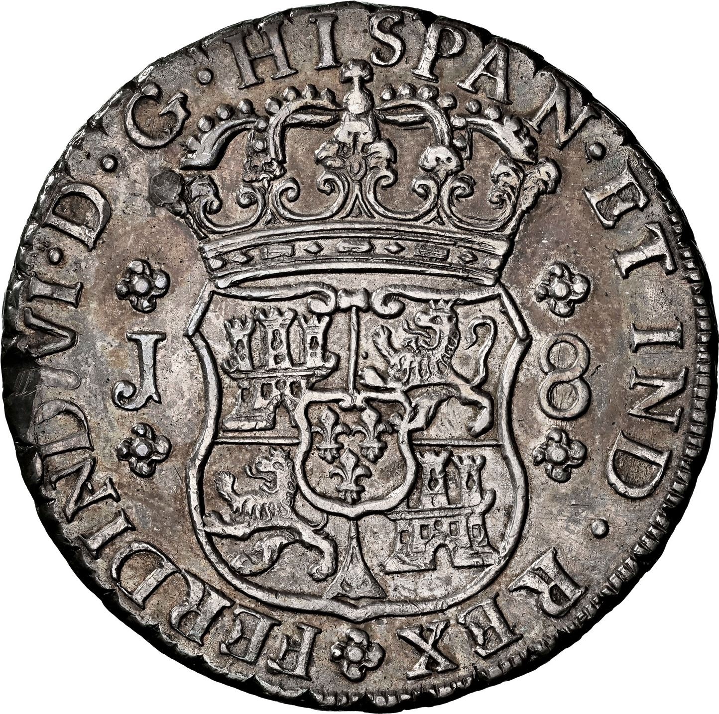 GUATEMALA, Guatemala City, pillar 8 reales, Ferdinand VI, 1757 J, NGC AU details / cleaned, ex-Brame