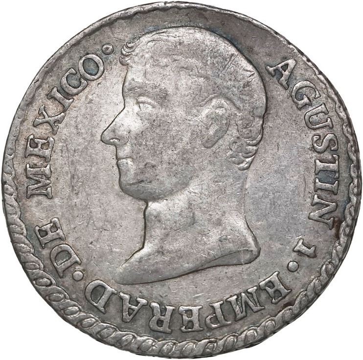 GUATEMALA (under Mexican Empire), struck in Mexico City, 1R-sized proclamation medal, Agustín I Iturbide, 1822, Quezaltenango. Fonrobert-7292; Grove-46a. 3.27 grams. 21 mm. Obverse with bust of Iturbide in center inside legend AGUSTIN 1• EMPERAD • DE MEXICO•; reverse with PROCLAMADO EN QUESALT• A• DE 1822• around oval arms (quetzal bird flying over two mountains) inside laurel and palm branches. Unevenly struck AU- (also slightly off-center) with very light toning over muted luster.