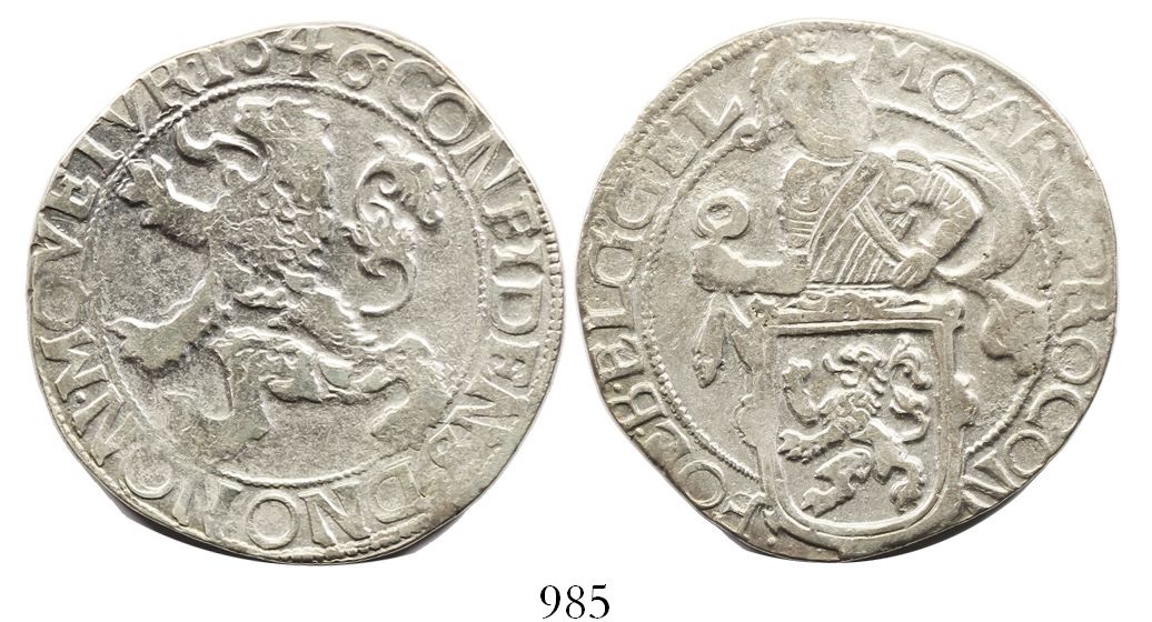 Gelderland, United Netherlands, "lion" daalder, 1646. KM-15.2 27.06 grams. Bold VF+ with high points slightly weak, lustrous fields, incipient toning.