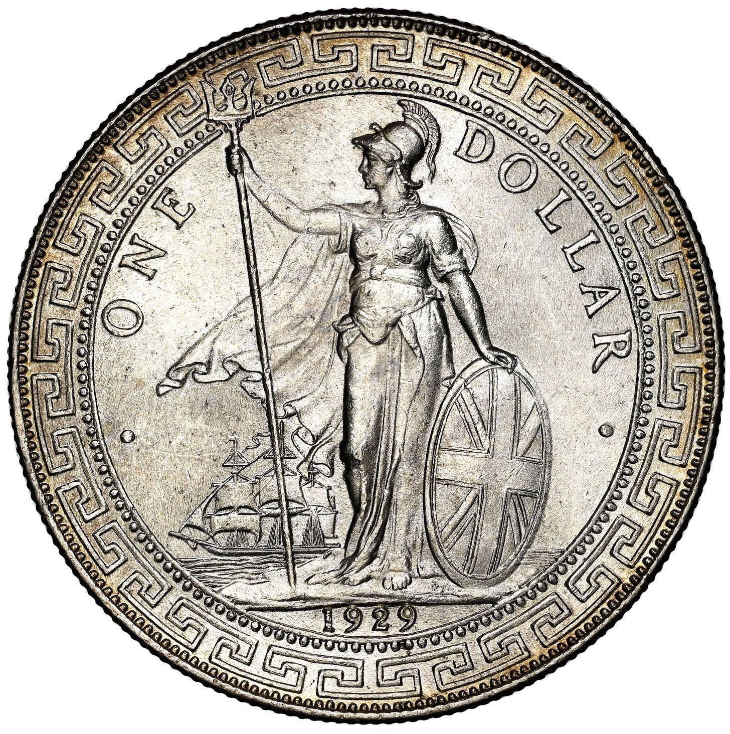 Great Britain (Bombay Mint), trade dollar, George V, 1929-B, NGC MS 64. KM-T5. Spectacular cartwheel luster, light golden toning on rims only, minimal bagmarks.