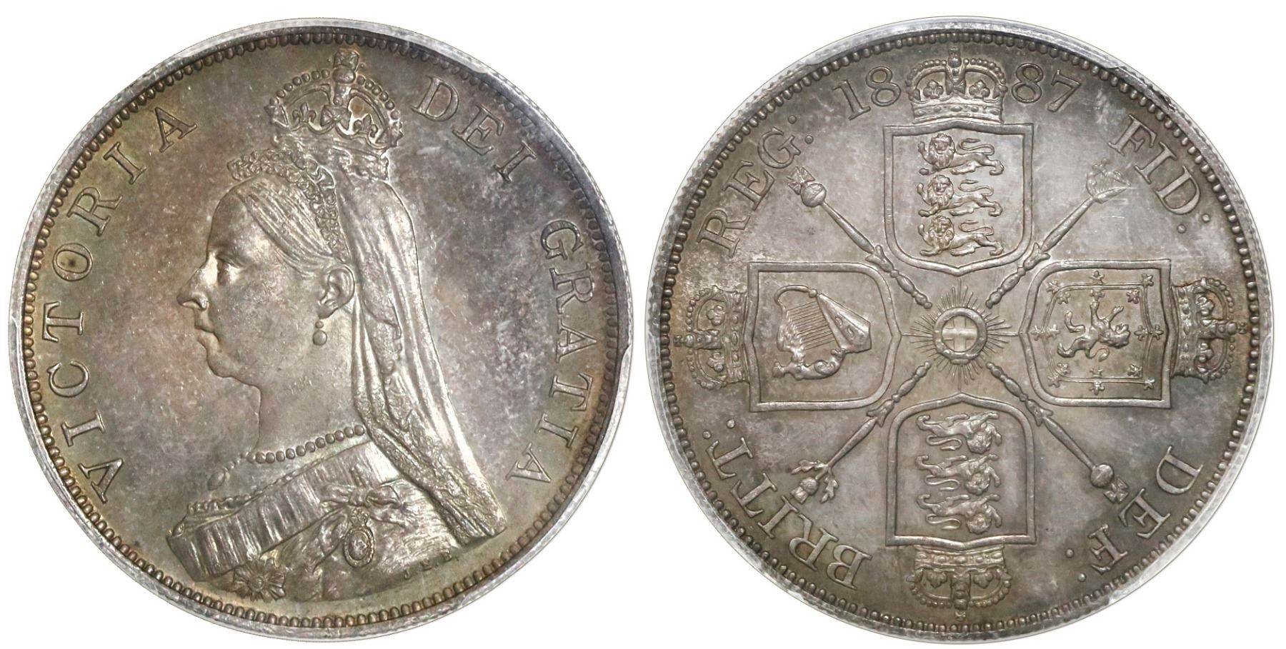 Great Britain (London, England), double florin, 1887, Victoria, Arabic 1, PCGS MS63.