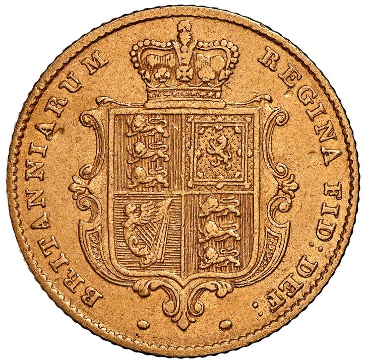 Great Britain (London, England), gold half sovereign, Victoria (young head), 1843, NGC VF details / damaged / Schiehallion 1879 (Shipwreck Label). Sp-3859; KM-735.1. Muted luster, minor divots. NGC #6442534-007. With generic certificate from the salvor. From: Schiehallion, sunk in 1879 off the Isle of Wight, England