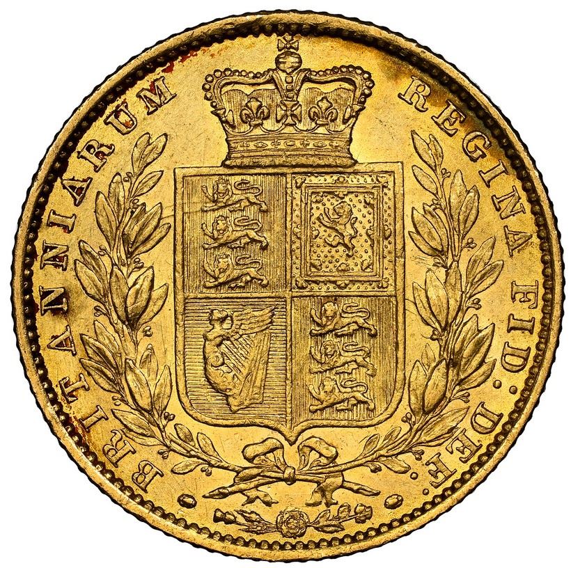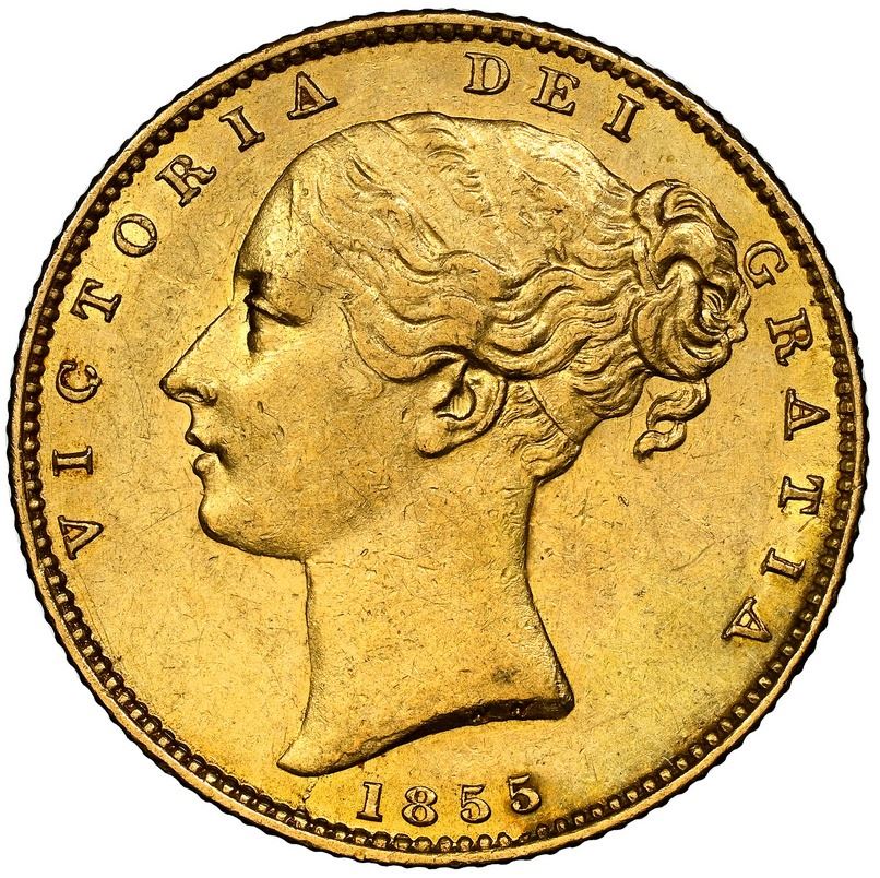 Great Britain (London, England), gold sovereign, Victoria (young head), 1855, with WW incuse, NGC UN