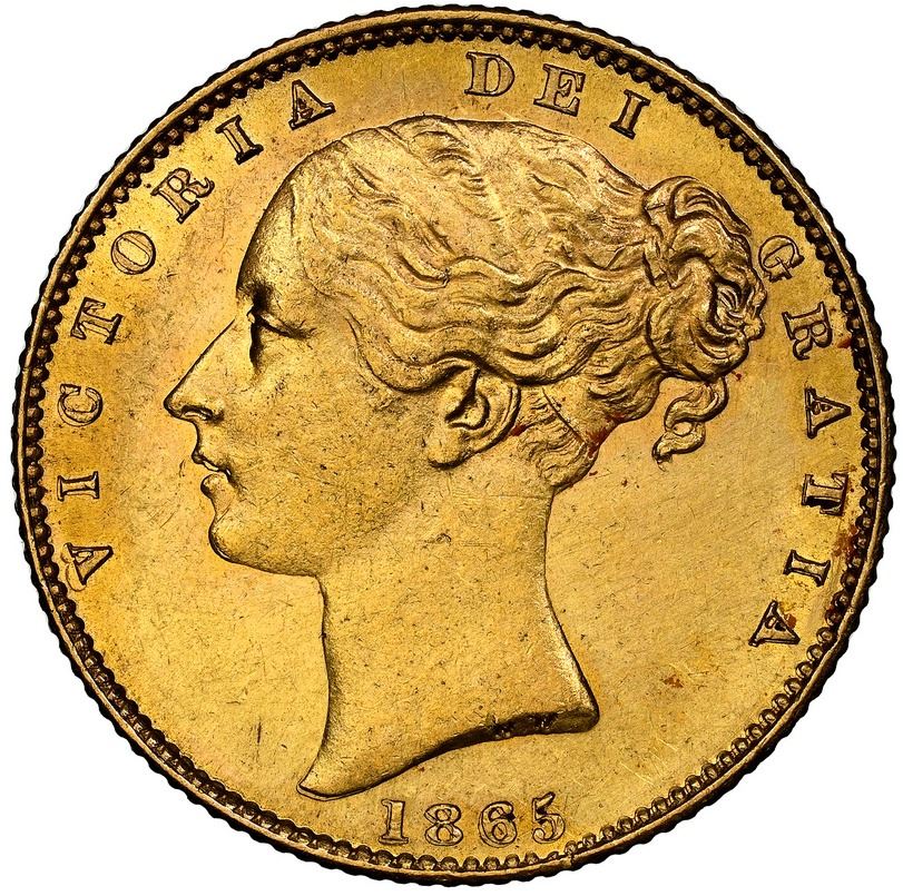 Great Britain (London, England), gold sovereign, Victoria (young head), 1865, die number 12, NGC UNC