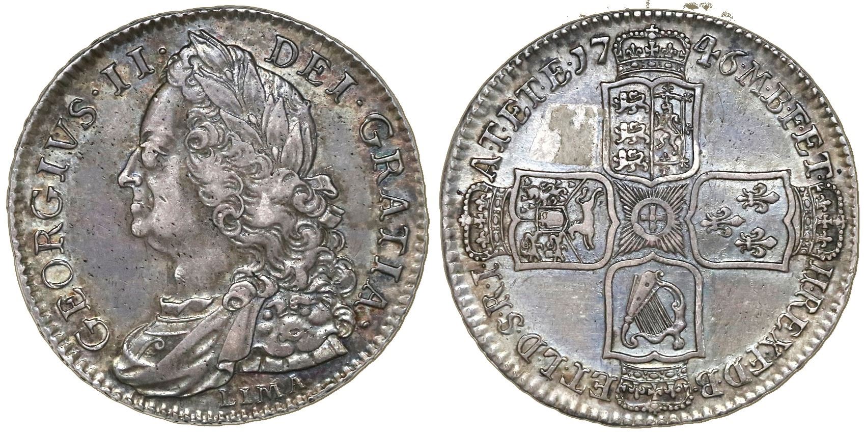 Great Britain (London, England), half crown, George II, 1746, with LIMA below bust.
