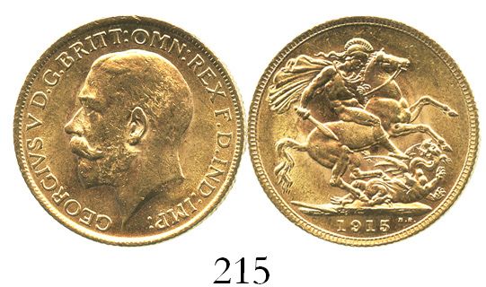 Great Britain (London, England), sovereign, George V, 1915. Sp-3996; KM-820. 8.0 grams. BU, very flashy and choice.