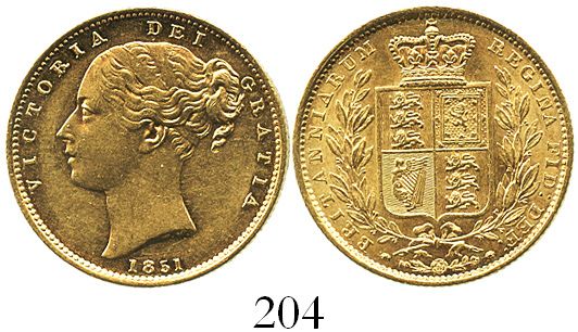 Great Britain (London, England), sovereign, Victoria (young head), 1851.