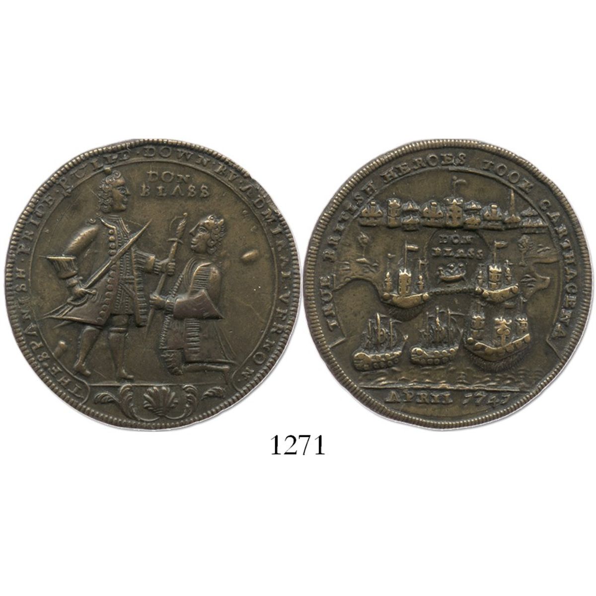 Great Britain, brass "Admiral Vernon" medal, Cartagena, 1741, Vernon and Blas.