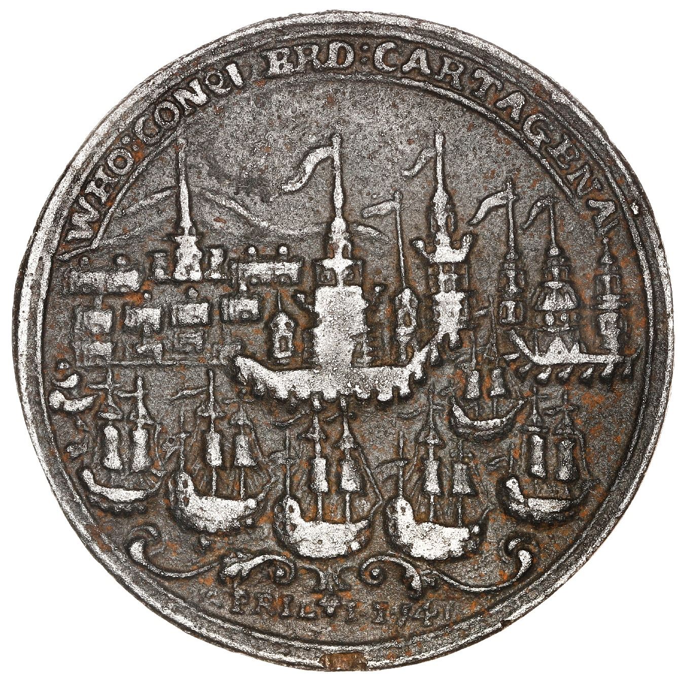 Great Britain, cast-iron Admiral Vernon medal, 1741, Cartagena, Vernon, Ogle and Wentworth, ex-Adams
