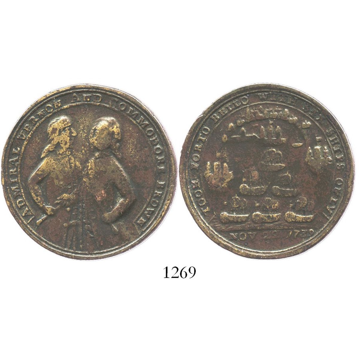 Great Britain, copper "Admiral Vernon" medal, Porto Bello, 1739, Vernon and Brown.