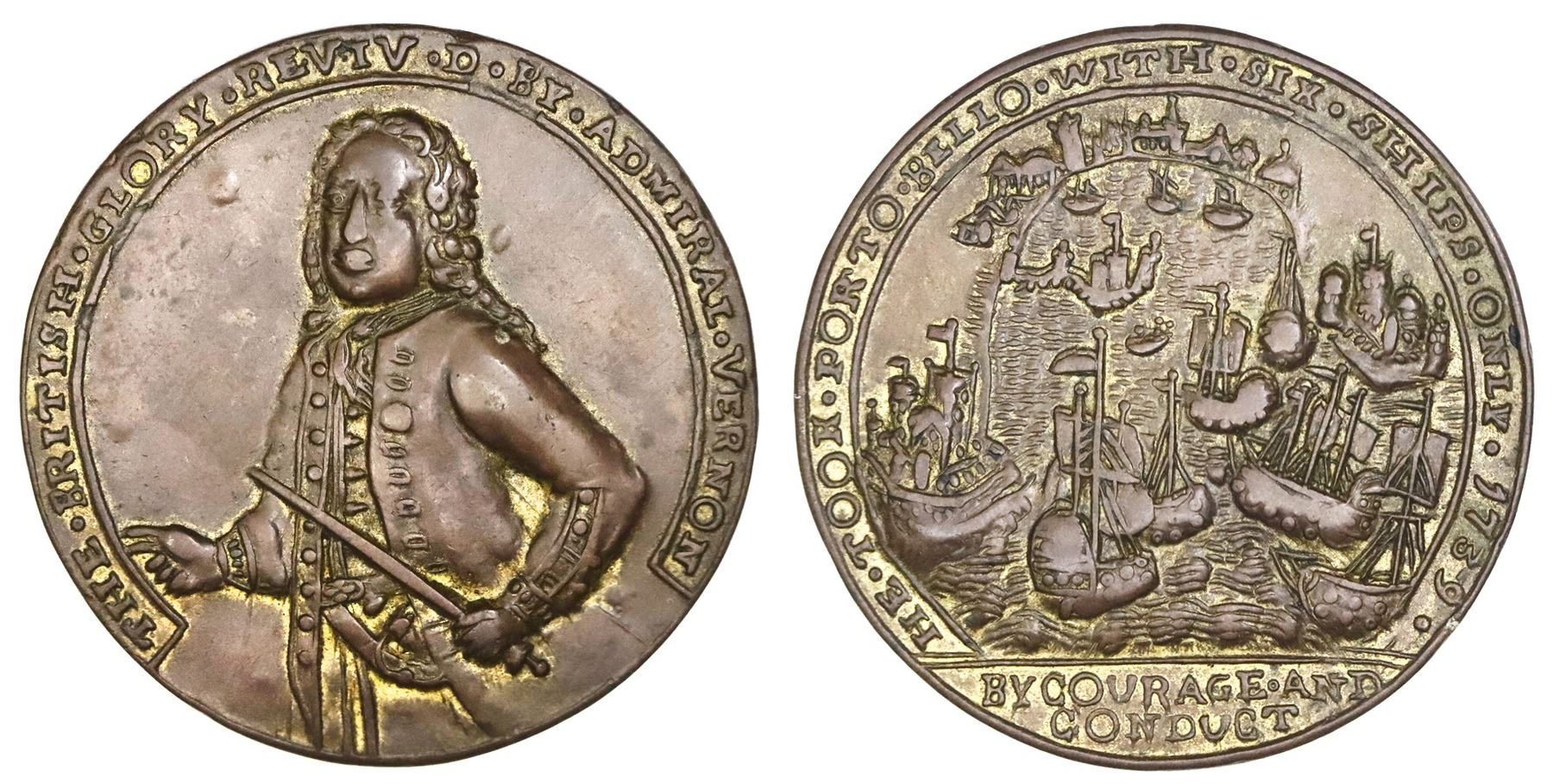 Great Britain, copper-alloy Admiral Vernon medal, 1739, Porto Bello, Vernon alone, ex-Adams.