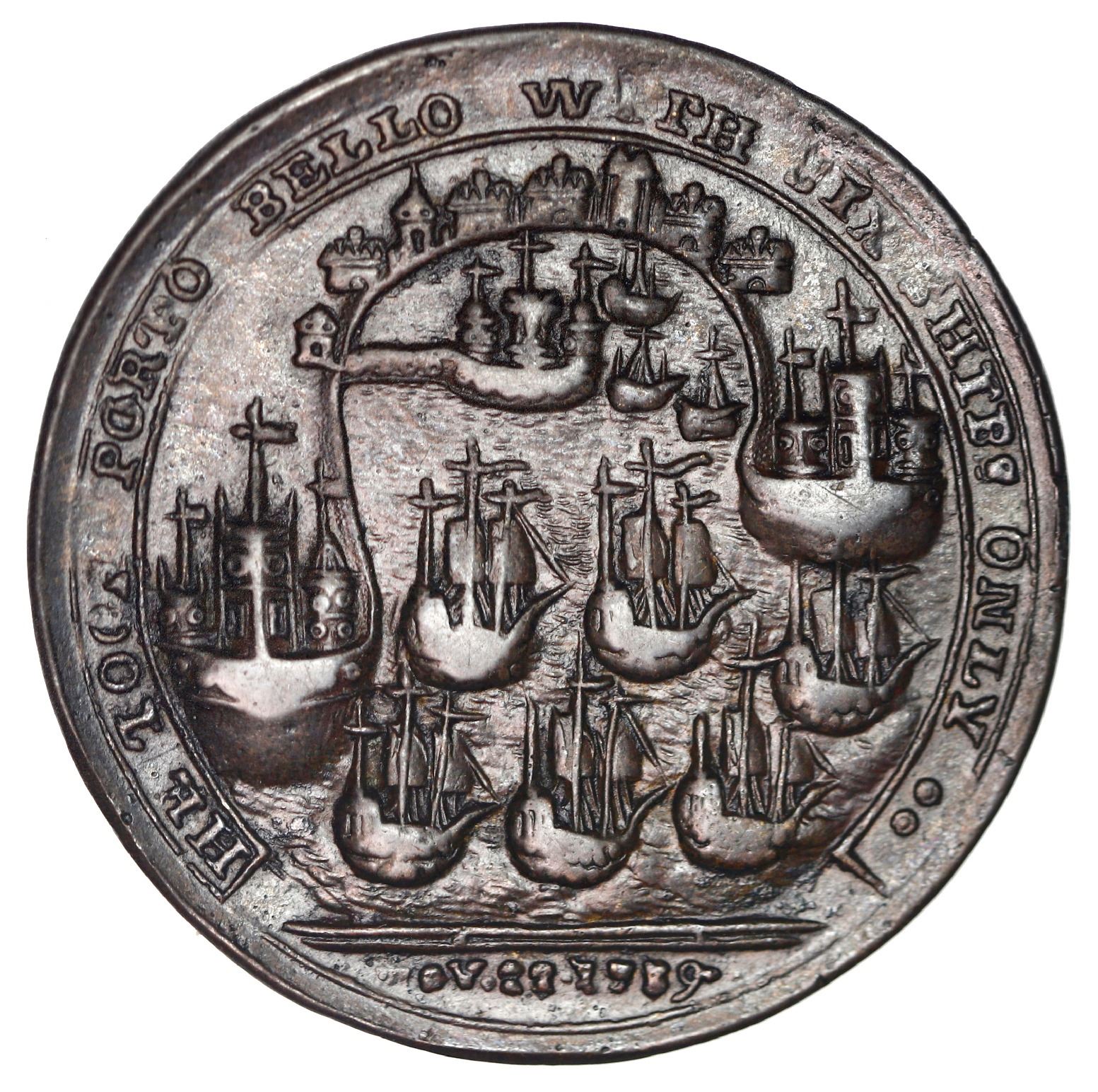 Great Britain, copper alloy Admiral Vernon medal, 1739, Vernon and cannon and ship / Porto Bello, ex