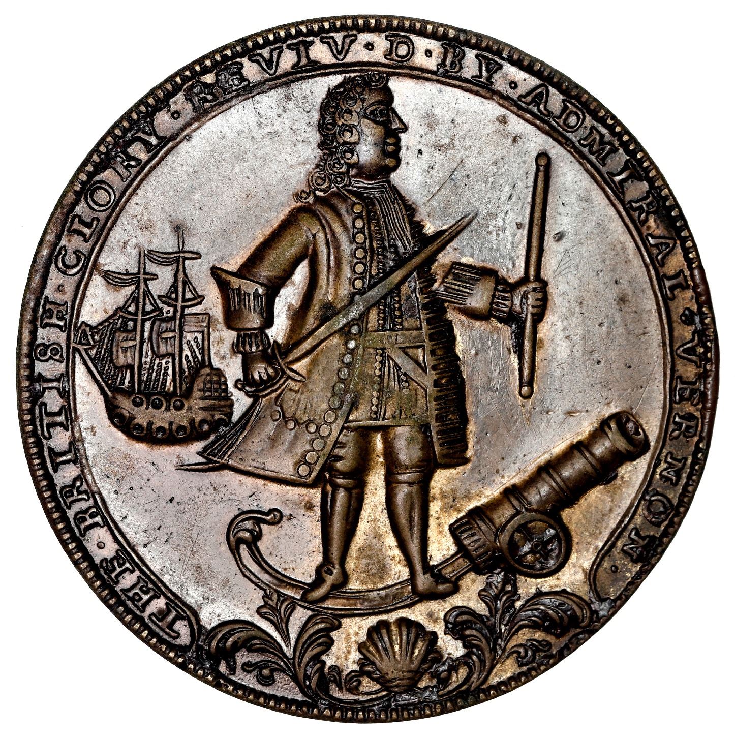 Great Britain, copper alloy Admiral Vernon medal, 1739, Vernon and ship and cannon / Porto Bello, ex
