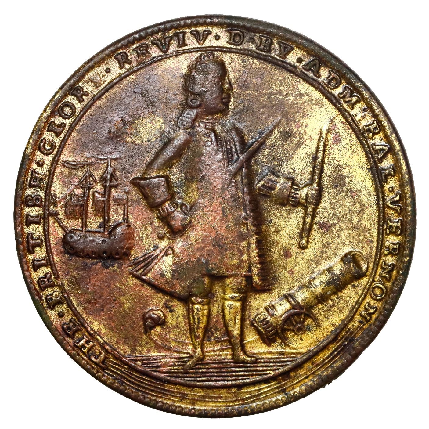 Great Britain, copper alloy Admiral Vernon medal, 1739, Vernon and ship and cannon / Porto Bello, ex