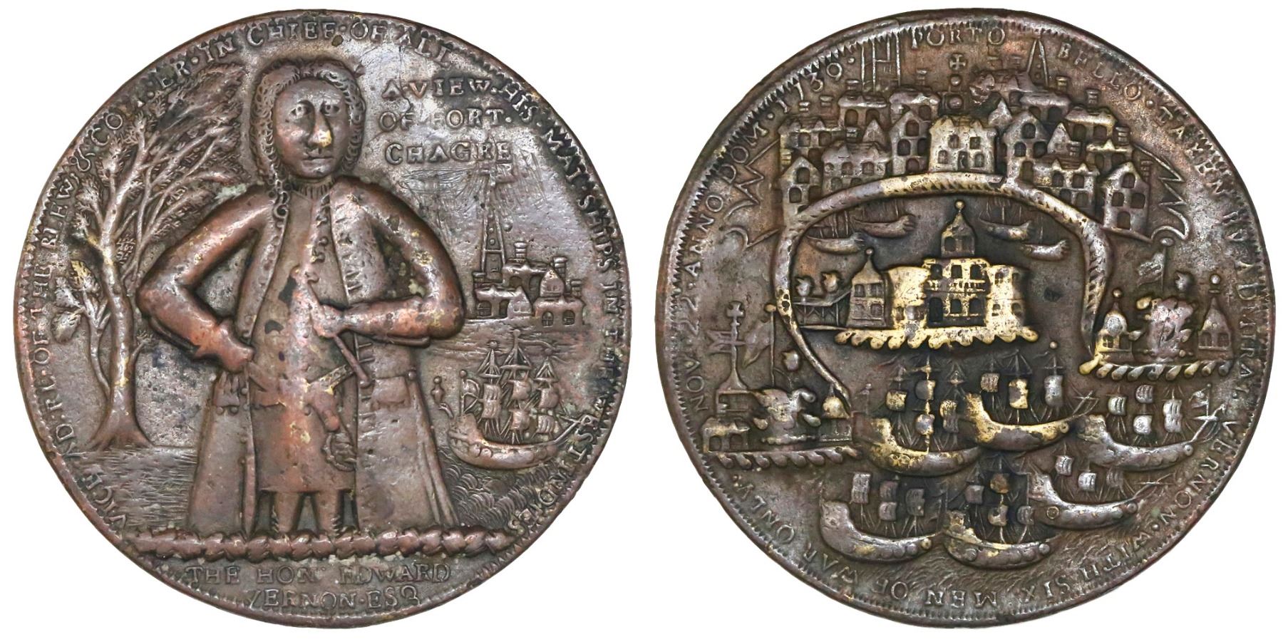 Great Britain, copper-alloy medal, Admiral Vernon, 1739, Porto Bello / Fort Chagre.