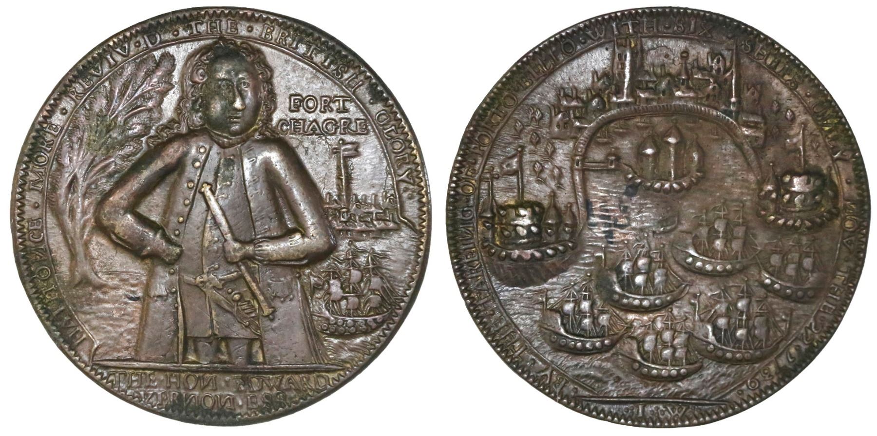 Great Britain, copper-alloy medal, Admiral Vernon, 1739, Porto Bello / Fort Chagre.