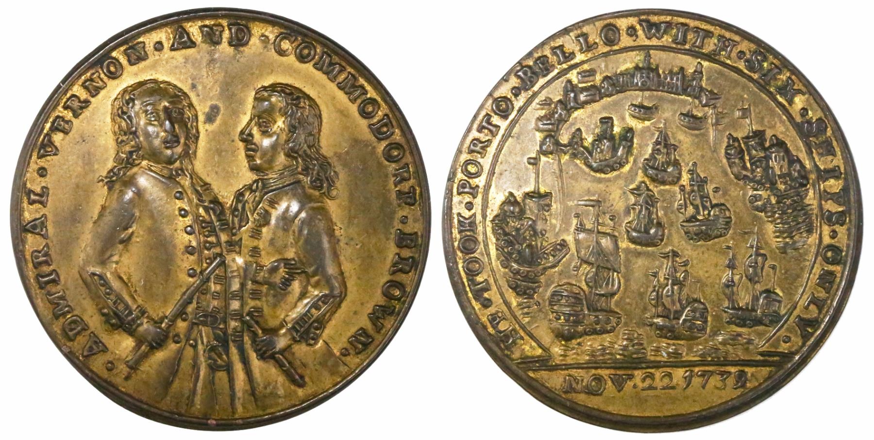 Great Britain, copper-alloy medal, Admiral Vernon, 1739, Porto Bello, three-quarter portraits of Ver