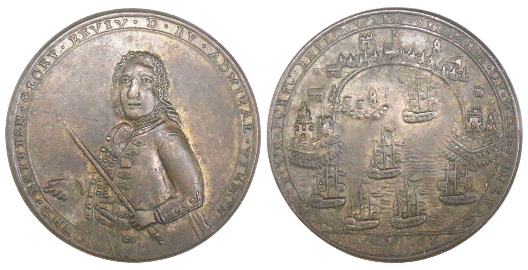 Great Britain, copper-alloy medal, Admiral Vernon, 1739, Porto Bello, three-quarters portrait, legen