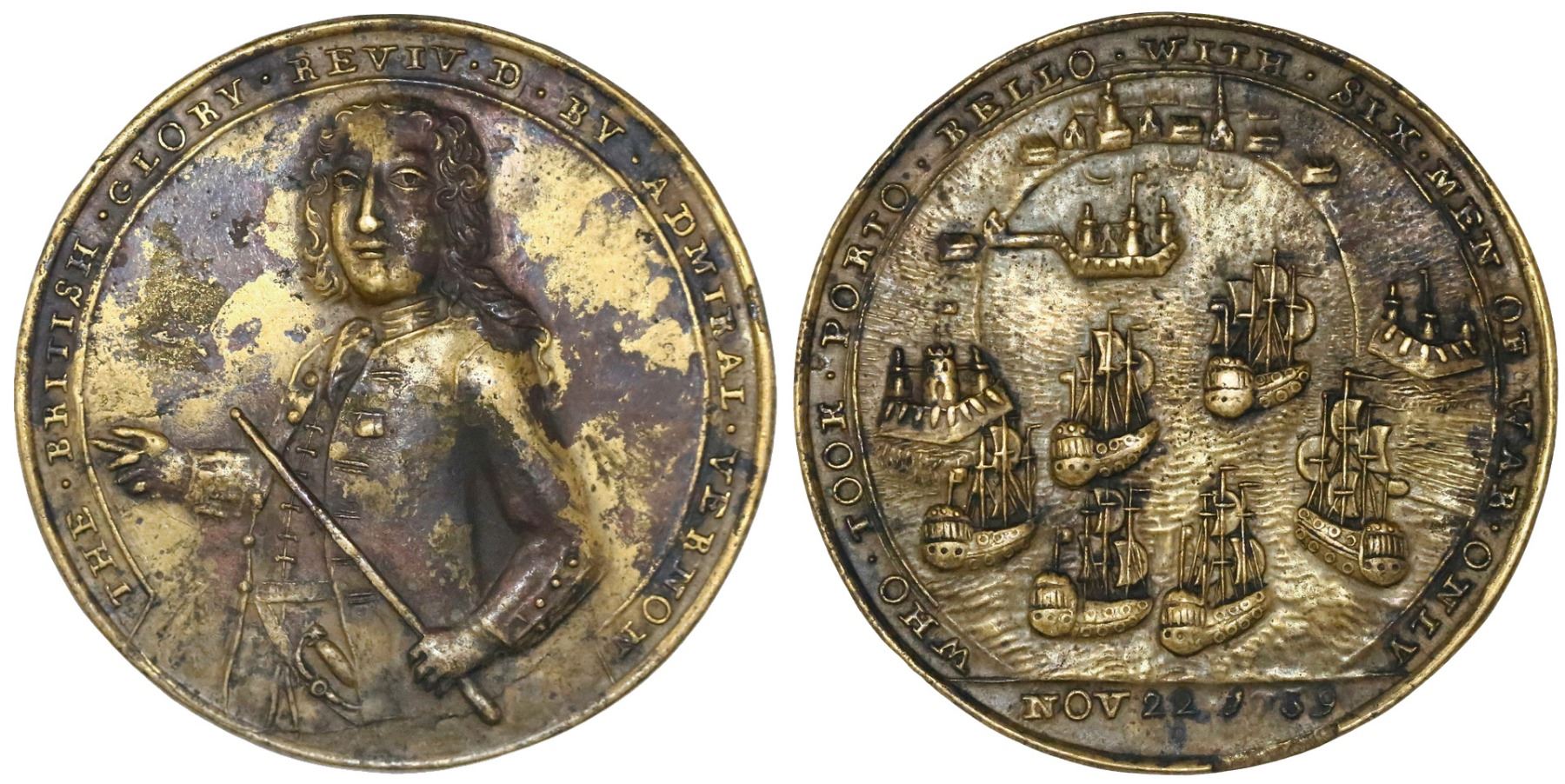 Great Britain, copper-alloy medal, Admiral Vernon, 1739, Porto Bello.