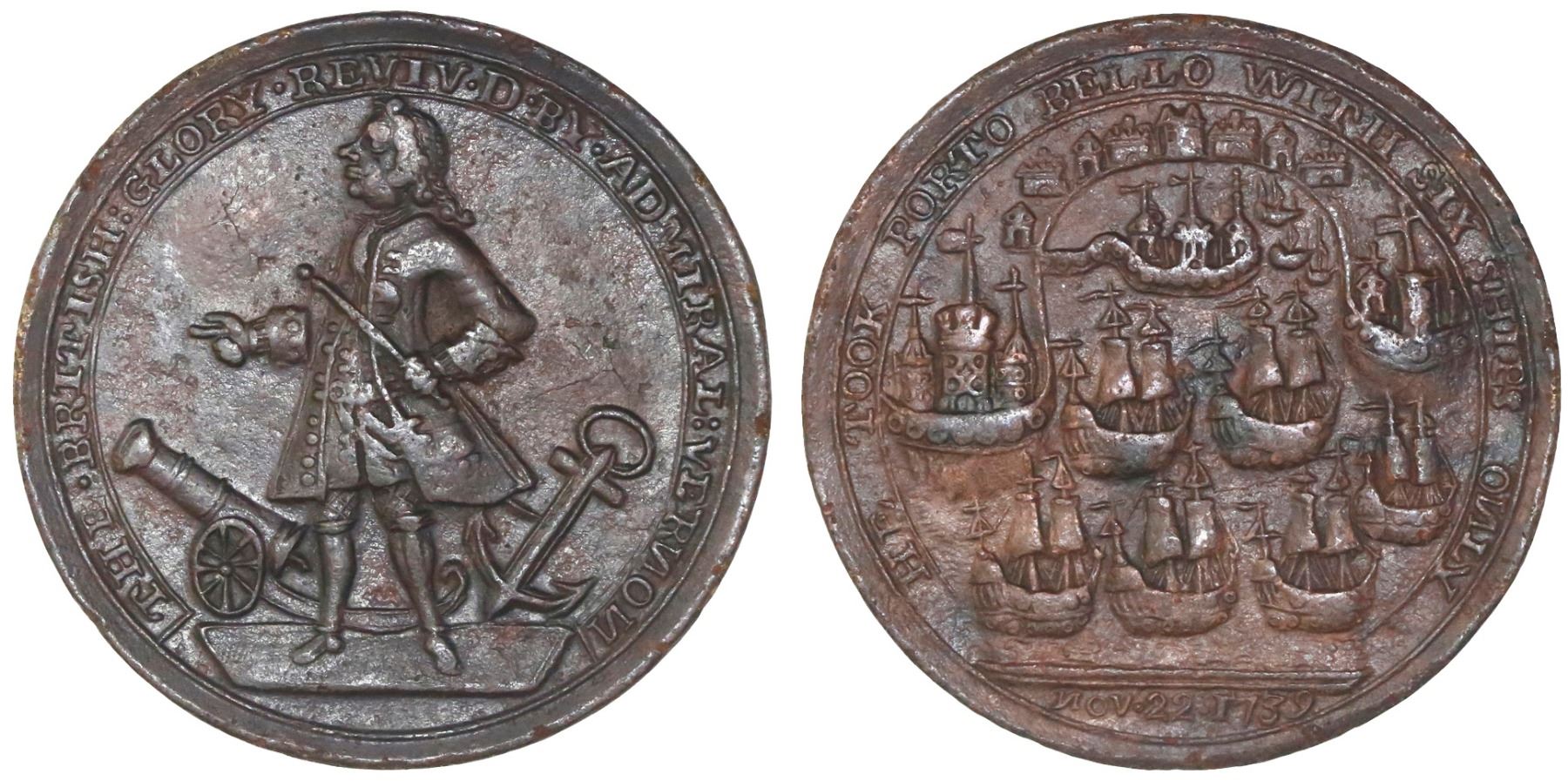 Great Britain, copper-alloy medal, Admiral Vernon, 1739, Porto Bello.