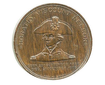 Great Britain, copper medal made from copper salvaged from the Foudroyant (1897), flagship of Lord Nelson, in original leather box. 28.1 grams. Choice XF with insignificant rim-nicks, striped toning, the box a bit tattered but intact and valuable in its own right.