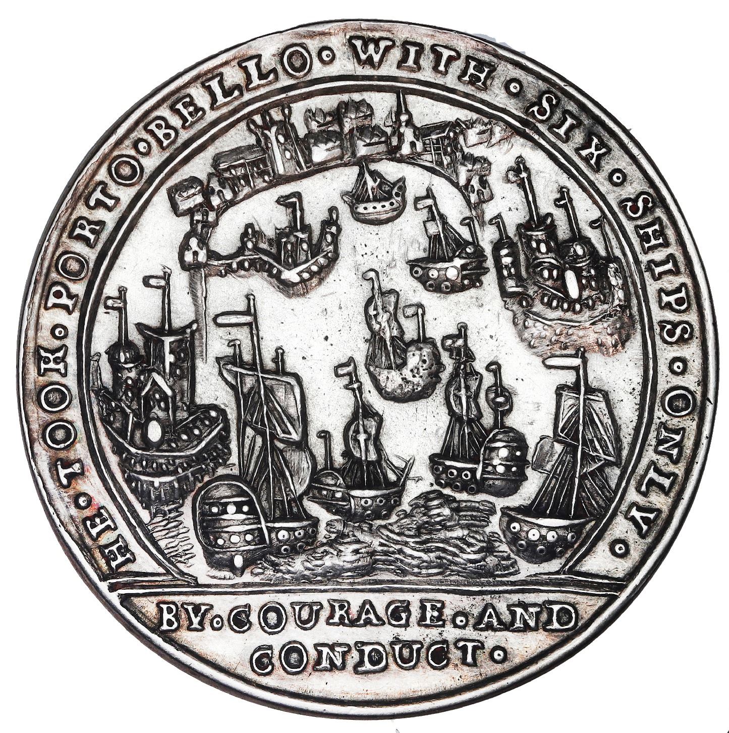 Great Britain, silver Admiral Vernon medal, 1739, Vernon / Porto Bello, rare, ex-Adams, DNW cover pi