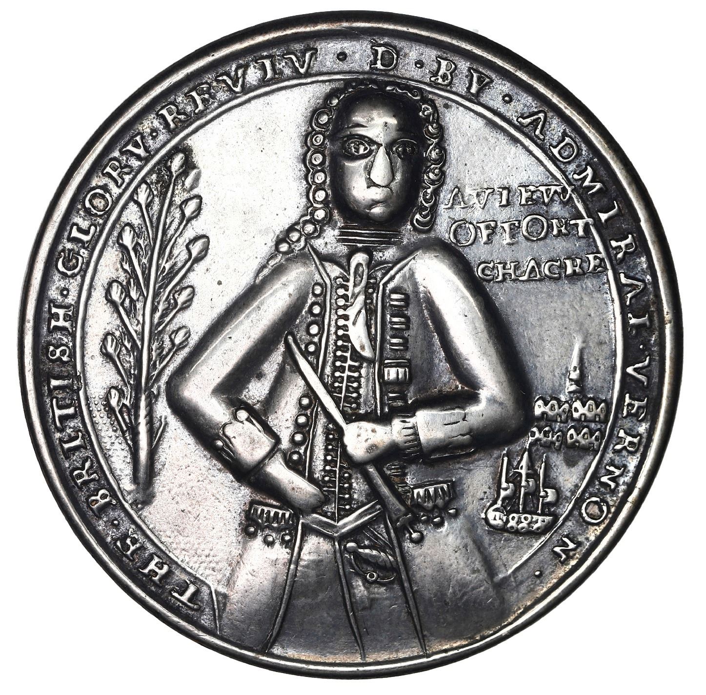 Great Britain, silver-washed copper alloy Admiral Vernon medal, 1739, Vernon and Fort Chagre / Porto