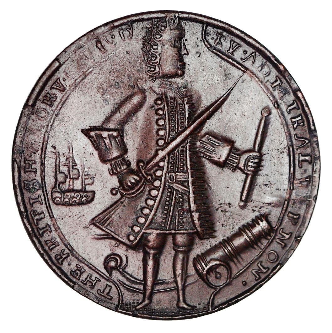 Great Britain, small copper alloy Admiral Vernon medal, 1739, Vernon and ship and cannon / Porto Bel