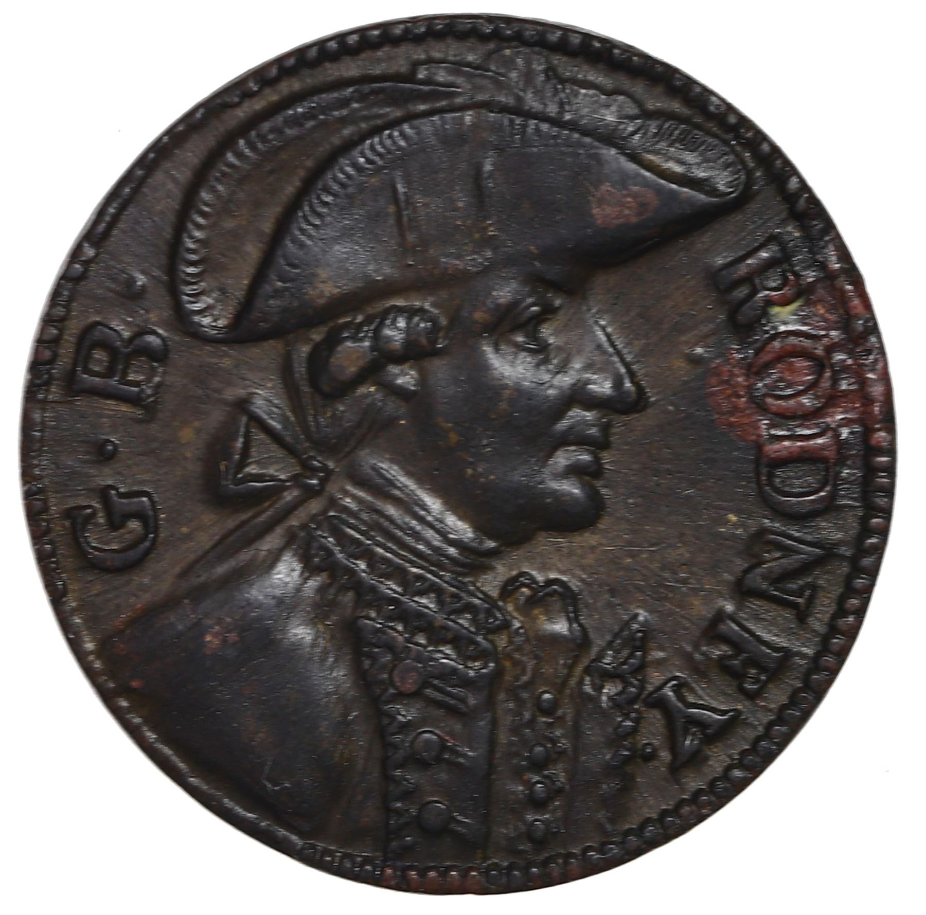 Great Britain, small copper medal, 1781, Admiral G.B. Rodney / HMS Sandwich.