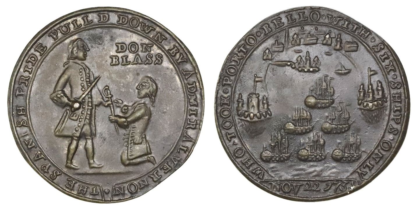 Great Britain, small-size copper-alloy Admiral Vernon medal, 1739, Porto Bello, Vernon and Don Blass