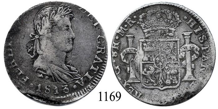 Guadalajara, Mexico (War for Independence), bust 8 reales, Ferdinand VII, 1813/2MR. KM-111.3. 25.6 grams. Attractively toned Fine+ for issue, typically crudely struck (especially the edge).