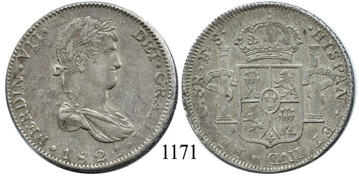 Guadalajara, Mexico (War for Independence), bust 8 reales, Ferdinand VII, 1821FS. KM-111.3. 26.9 grams. Choice XF, a bit lustrous and lightly toned.