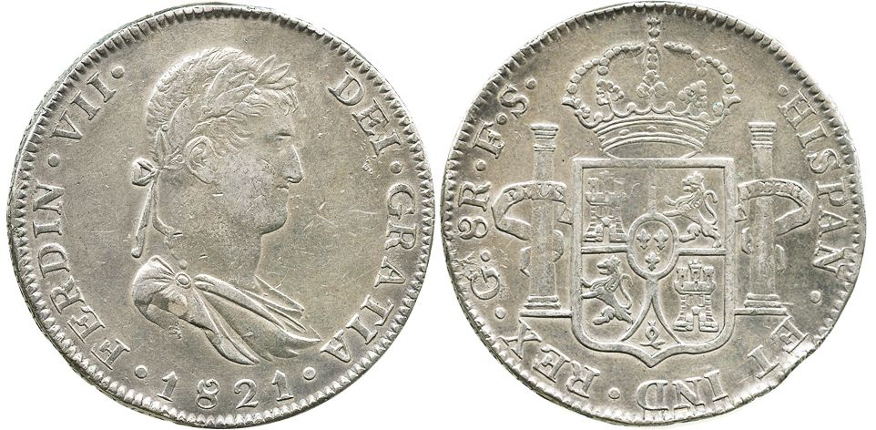 Guadalajara, Mexico, bust 8 reales, Ferdinand VII, 1821FS.