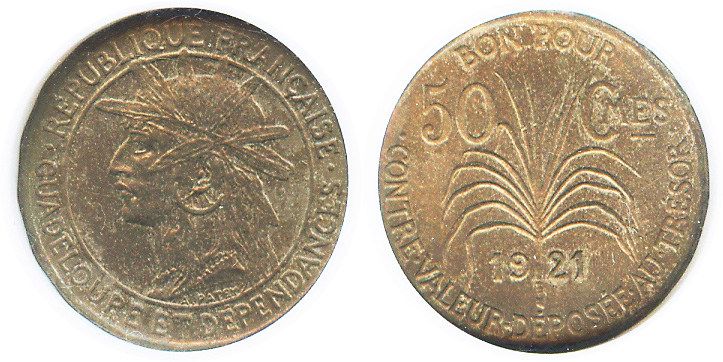 Guadeloupe, copper-nickel 50 centimes, 1921, encapsulated NGC MS 62.