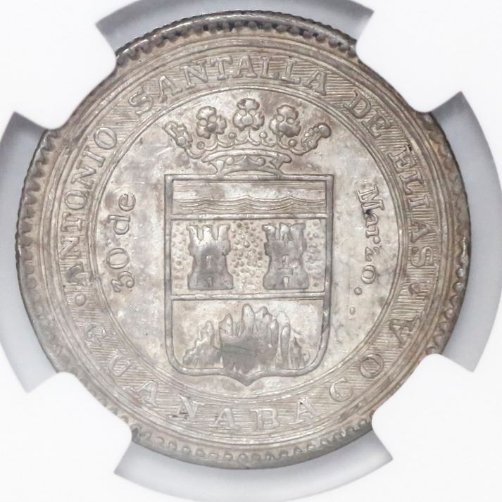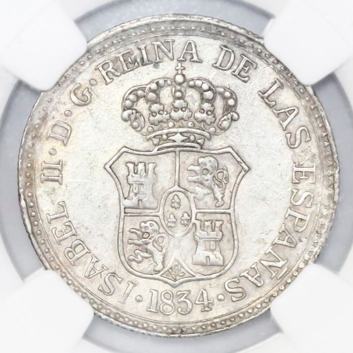 Guanabacoa, Cuba, silver proclamation medal, Isabel II, 1834, NGC AU 58.
