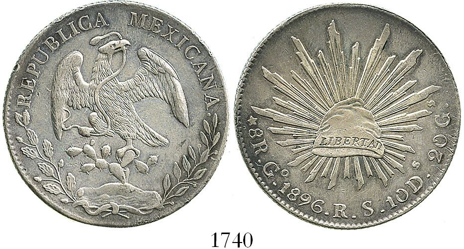 Guanajuato, Mexico, cap-and-rays 8 reales, 1896/5RS.