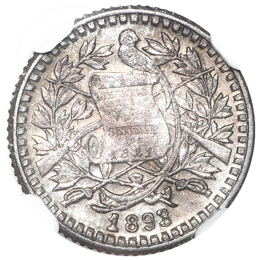 Guatemala, 1/2 real, 1893, large wreath and small date, NGC MS 65 ( top pop ).