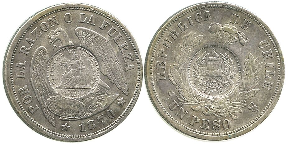 Guatemala, 1 peso, 1894, 1/2 real counterstamp on a Santiago, Chile, 1 peso of 1870, rare early date